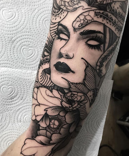 First Session For Natalia Work In Progress Thanks A Lot For Budget Tattoos Budget Lot Nata Medusa Tatowierung Armeltatowierungen Tattoo Ideen